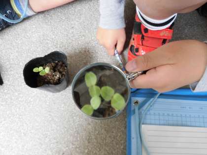 観察の時、子どもたちも育ってきた植物に嬉しそうな表情で、お互いの葉を見合っていました。