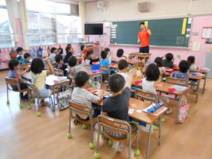 「先生が出したカードの数字より大きいもの(小さいもの)を出しましょう」といってみんなでそのカードを挙げて答え合わせです。