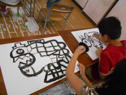図工科で「ふしぎな魚」をテーマに絵を描いています。今日はアクリル絵の具を使って自分の想像するふしぎな魚を描いていきました。初めはなかなか描きはじめられず悩んでいた子どもたちも一度描きだすとどんどん手が進み、かっこいい魚やかわいい魚を描いていました♪