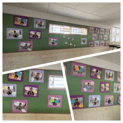 廊下の掲示板には、お弁当作りの写真を掲示しています。
