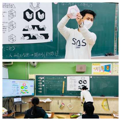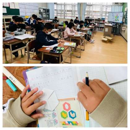 今日は六角がえしを作成しながら、六角形の特徴をさぐっていきました。