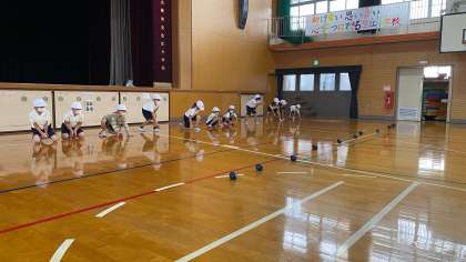 体育の時間にボッチャをしました。的となるボールを狙って楽しんで取り組みました!