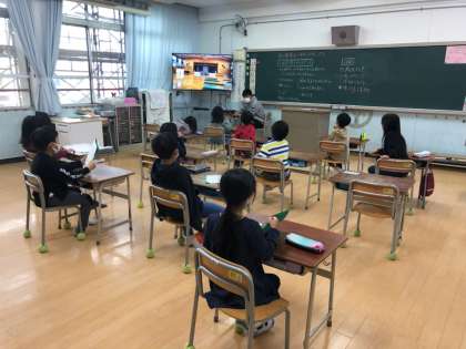 来週の人権集会に向けて、講堂で練習をしました。その時撮った動画をみながら、次の時間に反省会をしました。どうすればもっといい発表になるか、自分たちで考えることができました。『大きな声』『はっきり』『口をしっかりあける』などたくさんの頑張るポイントを見つけていました。保護者の方には、直接見ていただくことはできませんが、Microsoft Teamsで見ていただけますので、楽しみにしていてください。