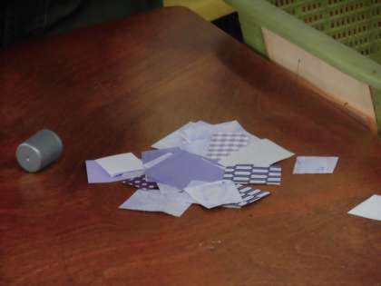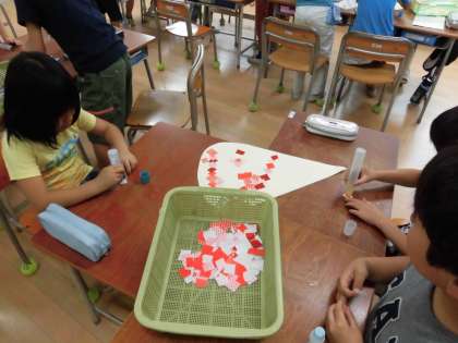 3人ずつのグループに分かれて、切った折り紙を貼っていきました。すべてのグループが完成したわけではありませんが、とてもきれいに仕上げていて完成がとても楽しみです!