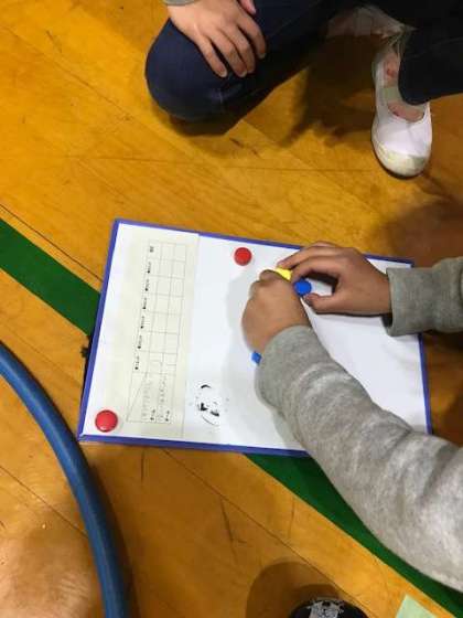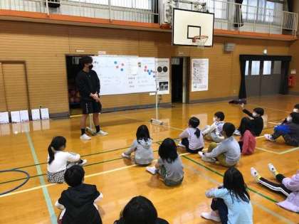 森先生が体育でボッチャを教えてくれています。国語の学習でも登場しましたが、ボッチャは誰でも楽しめるように考えられたパラリンピック固有の競技です。誰でもの中には、当然子どもも入ってきます。みんな、作戦を考えたり、うまくいったら盛り上がったり、ボッチャに夢中です。