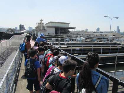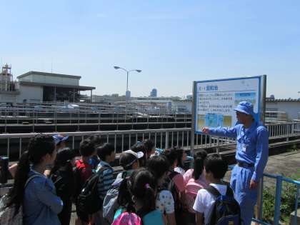 浄水場では見学をはじめ、実際に使っている水道管の中を通らせてもらったり、キレイになったばかりの水道で手や顔を洗わせてもらいました。子どもたちは初めての体験ばかりで興味津々!!!