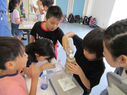 また、最後には水がキレイになるための実験もさせてもらい、子どもたちは大喜びでした。