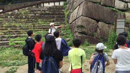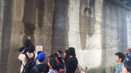 子どもたちは戦争の痕を目にし、実際に弾痕の痕などを手で触れたり、また体験しその場で当時の戦争のお話を聞くことで平和の大切さに気付いていました。