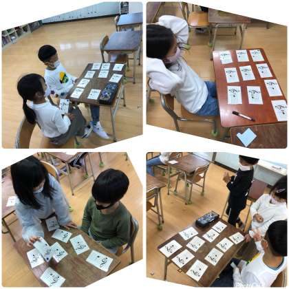 今日、楽譜かるたを作って、実際にとる練習をしました。子どもたちは、まだ覚えれていないので、悩みながらカードをとっていました。楽しみながら覚えれるので、2年生のみんなならすぐに覚えられそうですね。