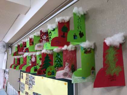 図画工作科で「クリスマスカード」を作りました。クレパスで上手に絵を描いています。また、内側には、欲しいものや願い事がたくさん書かれています。とてもかわいい作品ができています。ぜひ、12月16日からの個人懇談会の際、ご覧になってください。