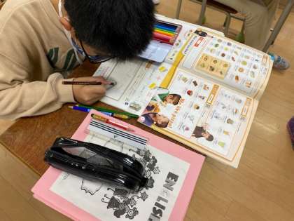 5年生の英語では、「What would you like?」の学習で、自分のレストランのメニューを考えました。1000円以内で好きな食べ物を選びます。和食から洋食、デザートまでたくさんのメニューがあって、なかなか選びきれません。それぞれの好みが詰まったメニューのお披露目は来週です。楽しみです。
