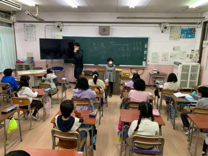 朝の会でのスピーチをしているようすです。