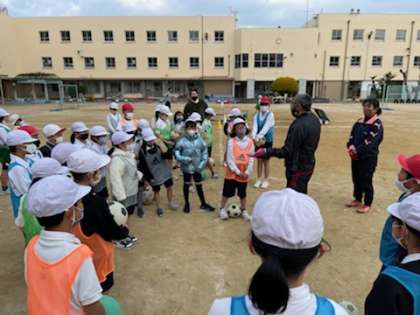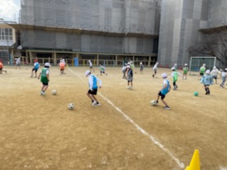 今日は、鶴見区のサッカー教室の方々に来ていただき、全学年にサッカーの授業をしていただきました。