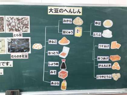 しばらくホームページが見にくくなっており、更新が止まっていました。申し訳ありませんでした。さて、16日に栄養指導があり、豆の種類と大豆の加工について栄養教諭の小西先生に教わりました。子どもたちは、「豆ってすごい!」と感じ、これからおいしく食べたいと感想を述べていました。