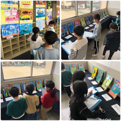 待ちに待った作品展が始まりました。全学年の作品を鑑賞しました。友だちの作品の良いところをたくさん見つけることができました。高学年の作品は、特に目を輝かせて、鑑賞していました。次は、3年生で作品展があります。もっともっと成長した作品を見ていただけるように頑張ろう!!