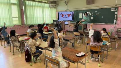 授業では唾液をたくさん出す「あいうべ体操」や「ベロベロ体操」を紹介しました。