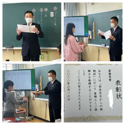 高学年 校長先生からの挑戦状の表彰!(3/16)