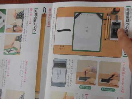 今日は、教科書通りに硯や筆を置くところから始めました。教科書を見て覚えて、その後教科書を見ないで並べ始めたのですが、初めてということもあって、あまり覚えられていませんでした。これからやっていって覚えていくと思います。