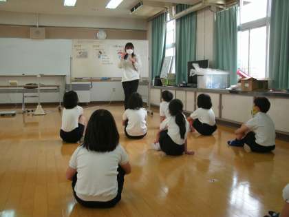 身長と体重をはかる前に「自分でできるけがの手当て」について保健指導をしました。
