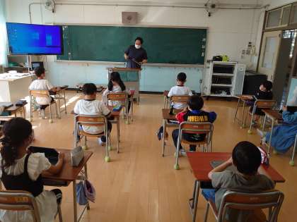 昨年使っていたものとはちがい、パソコンにもタブレットにもなるので、子どもたちはとても驚いていました。大切に扱うこと、しっかり話を聞いてから操作することを約束して、いざスタート!