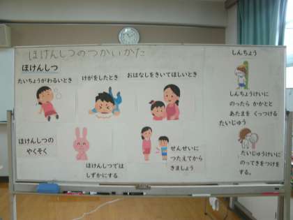 ・保健室では静かにする(しんどいお友達が休んでいることもあるため)