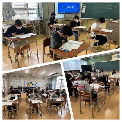 5年生は1時間目から、国語、算数、理科の大阪府新学力テストに挑戦しました。
