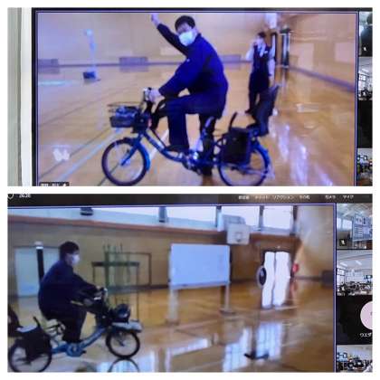 感染症予防の面から、講堂と教室をオンラインでつなげての学習!!