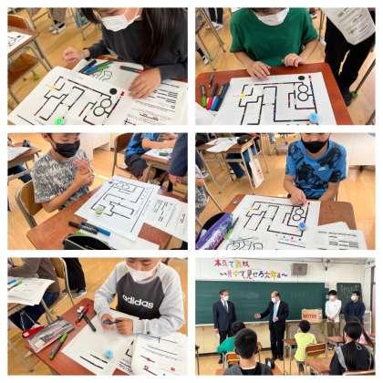 ゴールに向かって一目散に進むだけでなく、途中で回転してみたり、3秒止まってみたり、寄り道してみたりと工夫を加えたプログラミングで、見ていてとても楽しかったです。