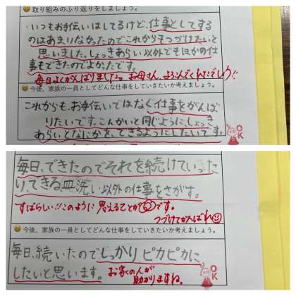 「お手伝い」と「仕事」の違いを再度確認して、これからも家族の役に立つ「仕事」をし自立する力をつけていこう話しました。
