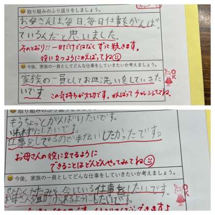 昨日最終日を迎え、今日の家庭科の時間に取り組みの振り返りをしました!!
