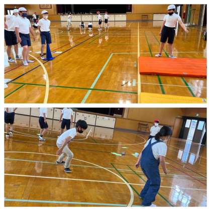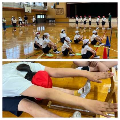 今日は、上体起こし、反復横跳び、立ち幅跳び、長座体前屈の4つの種目の測定をしました。