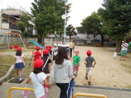 生活の時間に、生江南公園に公園探検にいきました。遊具がたくさんありました。遊具以外にも清掃用具入れなどの倉庫にベンチがたくさん。いろいろなものを発見しました。自由時間にはみんなでルールを守って楽しく遊ぶことができました。