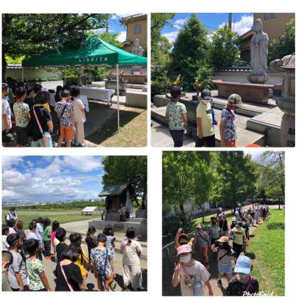 77年前の戦争中、この生江の町もたくさんの被害がありました。その時にたくさんの方が亡くなられたました。その方たちのことを思いお参りへ行きました。そして、2度と同じ過ちを繰り返さないことを誓いながら、黙祷を捧げました。平和な日本や世界でありますように…。