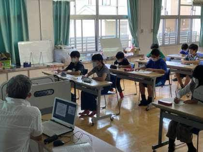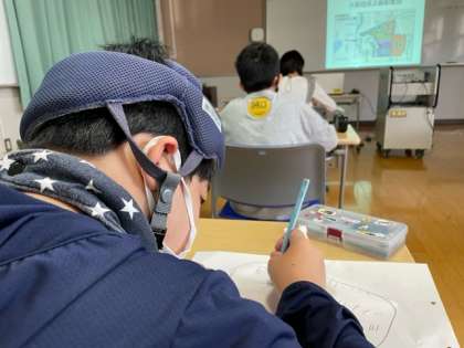 子どもたちは、細田さんの貴重な話を聴きながら、一生懸命メモをとっていました。