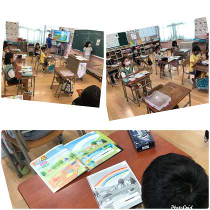 今日の3時間目に外国語活動で好きな色の言い方を学習しました。I like red. I like blue.〜と言いながら、自分の描いた虹を発表しました。どの子も英語で、堂々と発表ができていました!