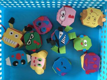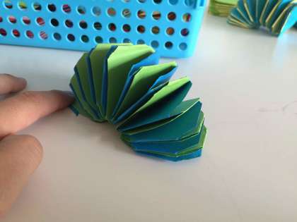 図工で作っているおもちゃ、コロコロコロリンが完成しました。これは、2枚の画用紙を交互に折り曲げて作った、バネのおもちゃです。伸びたり縮んだりを繰り返して、坂道を進んでいきます。お祭の屋台などで売っている、金属製のものと似ていますね。作る楽しさと、遊ぶ楽しさが両方楽しめる、おもしろい工作でした。