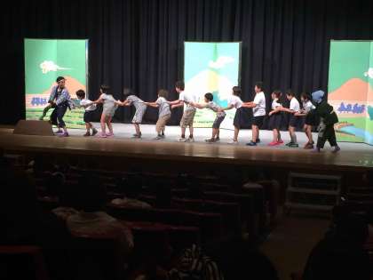 土曜授業で、劇鑑賞に出かけました。西長堀の子ども文化センターで、2校一緒に見ました。劇は、「天満のとらやん」です。出かける前は、あまり楽しみではない様子の子もいたようですが、劇が始まると、すぐに劇の世界に引き込まれていきました。終わりには、「めっちゃ楽しかった!」「また見たい!」「あっという間に終わった!」という感想がたくさん聞かれました。また、お話劇を見る機会というのも、なかなかないものです。子どもたちにとって、また一つ、貴重な経験になったと思います。