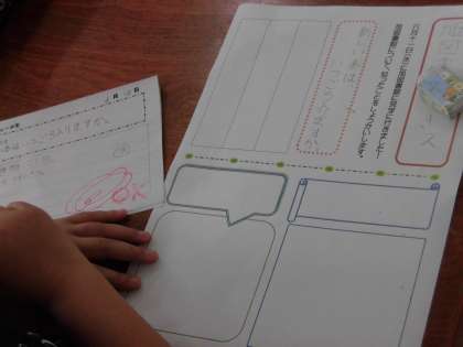 新聞づくり、子どもたちは黙々と書いて予想以上に書き進めることができました。