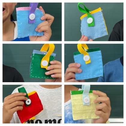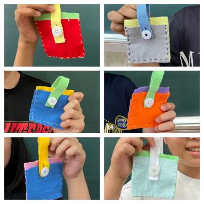 製作中は難しいところもあって苦戦していましたが、完成したミニバッグが思ってた以上によくできていて大喜びの5年生でした。よく頑張りましたね。
