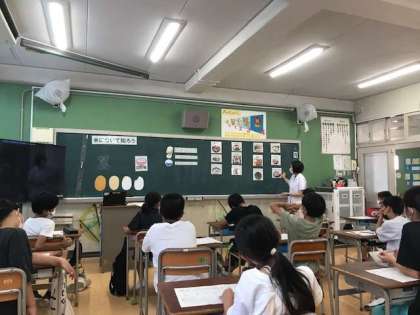 栄養教諭の小西先生による栄養に関する学習がありました。お米のことについて詳しく話をしてくださいました。お米の栄養素や、パンとの違いなど、今まで知らなかったことをたくさん学びました。