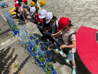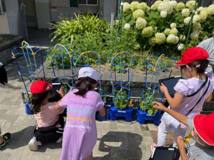 今日はICT支援員さんに写真の撮り方を教えてもらいました。さすが賢い1年生??すぐに使い方をマスターしました。さっそく生活科で育てているあさがおの写真を撮りにいきました。近くから撮ったり、角度をかえて撮ったりと上手に撮ることができました。