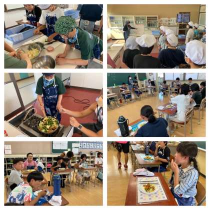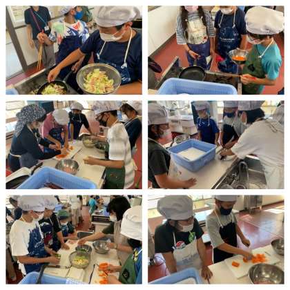 材料を包丁で切る、フライパンでいためるの2つの活動を班のみんながどちらもできるように役割分担を工夫して、今日を迎えました。