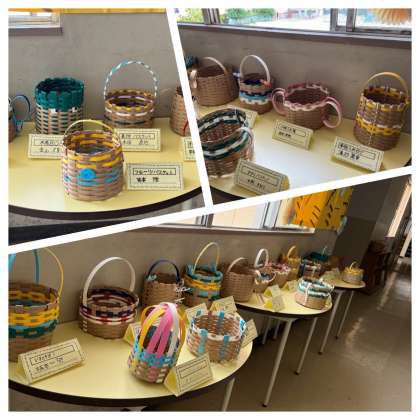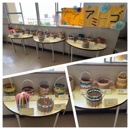 紙バンドを編んで編んで編みまくっていた図画工作科の「あみあみアミーゴ」の作品が、本日見事に出来上がりました〜!!