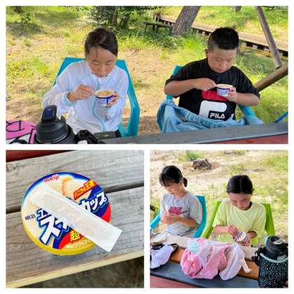 めいっぱいいかだで遊んだ後は、3時のおやつタイム!!