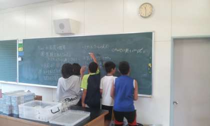実験が終わったら黒板に結果を書かせて、結果を確かめ合いました。