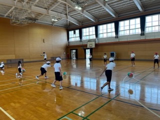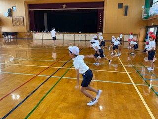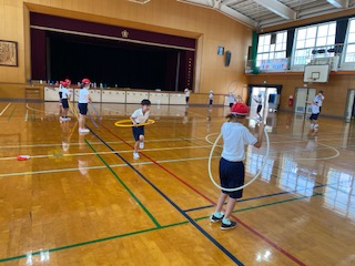 二学期始めの体育の時間は、なわとびやフラフープ、ボールなどを使ってたくさん運動しました。久しぶりに友だちと一緒に広い体育館で汗を流し、とても楽しそうでした。