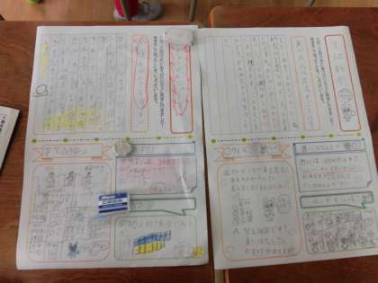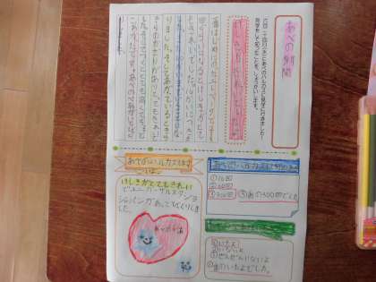 あべのハルカスに行ったときに、しおりに書いたことを参考にしながら新聞をかきはじめましたが、自分たちで色使いや絵など工夫して、みんなが読みたくなるような新聞に仕上がっていました。