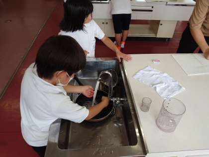 今日の学習では、家庭生活で使っているものに入る水のかさを調べました。