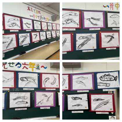 図画工作科で取り組んでいた『にぼしの水墨画』が完成しました!!