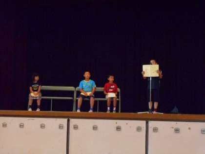 舞台に上がると、3人とも堂々と、しっかりとした声ではきはきと発表することができていて、とても素晴らしかったです。最後に、賞状もいただきました。